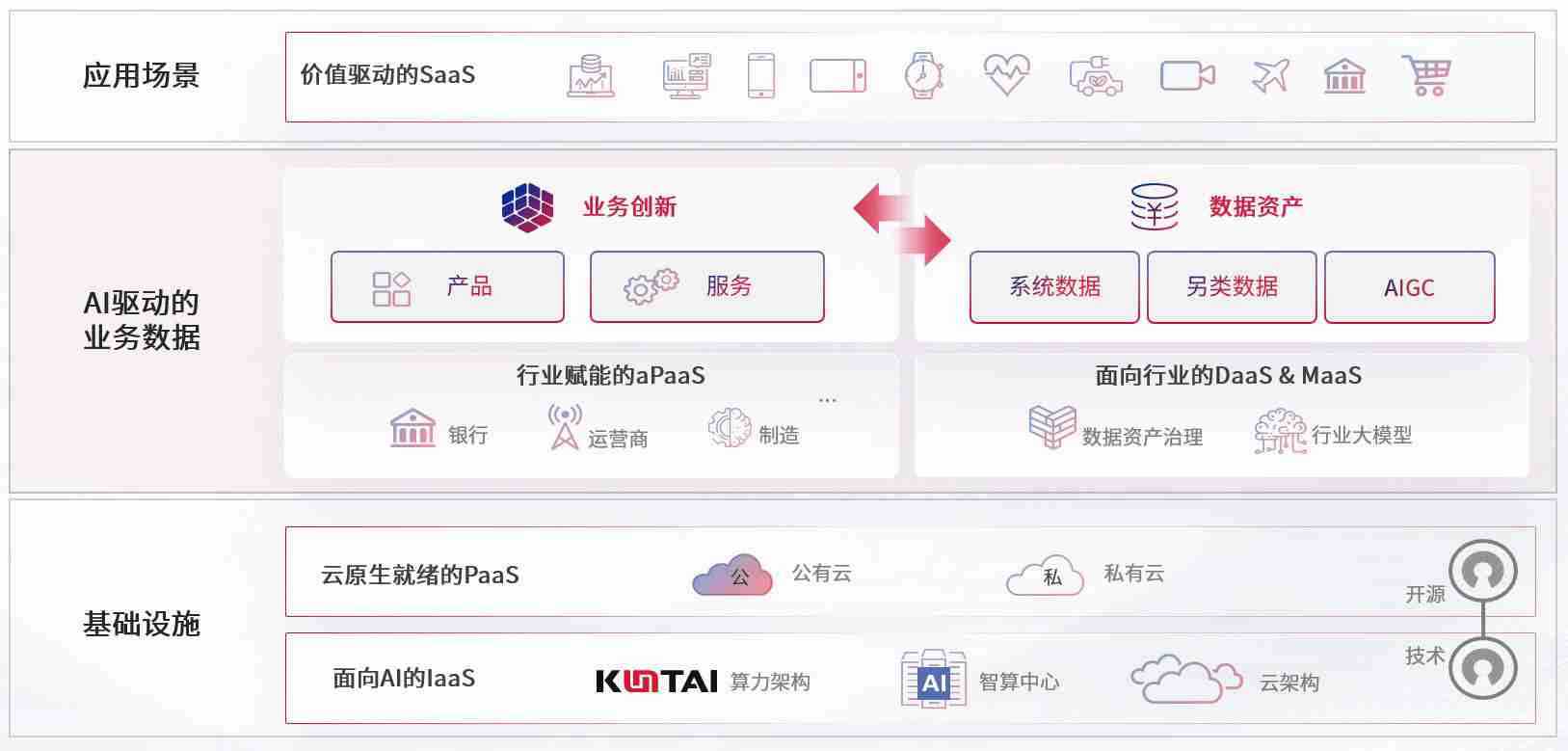 数字时代,,,,围绕企业数字化转型的关键要素,,,,7709美彩国际数码开创性的提出数云融合战略和技术体系框架,,,,着力在云原生、、、数字原生、、AI原生和信创产业上架构产品和服务能力,,为处在不同数字化转型阶段的快消零售、、汽车、、金融、、、医疗、、、政企、、、、教育、、、运营商等行业客户提供泛在的敏捷IT能力和融合的数据驱动能力,,构建跨界融合创新的数字业务场景和新业务模式,,,助力企业级客户建立面向未来的核心能力和竞争优势,,,,全面推动社会的数字化、、智能化转型升级。。。。